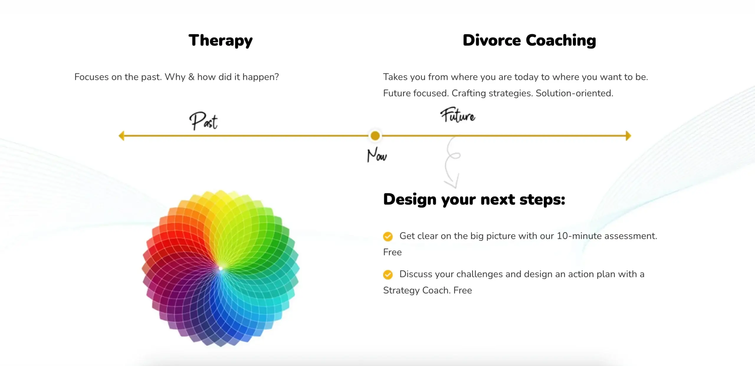 Therapy is not necessarily suitable for everyone. Divorce coaching keeps you solution-focused and clear-headed, even when the process feels overwhelming.